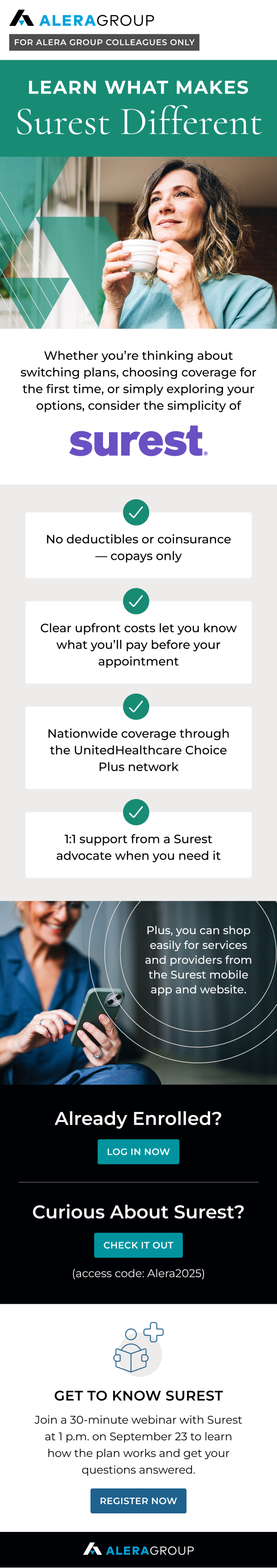 While freelancing for Blue Communications, I designed HTML emails for their client, Alera, that adhered to approved visual guidelines. I provided stock photography options for hero banners, received direction and support from a lead designer, and handed off design assets to programmers.